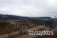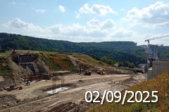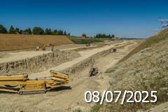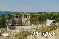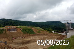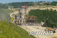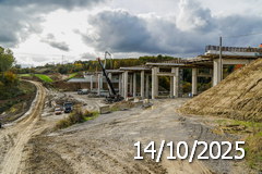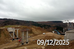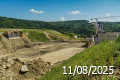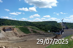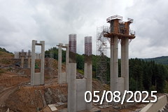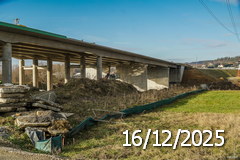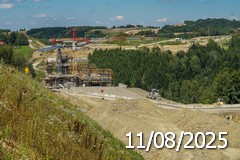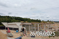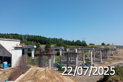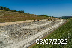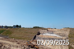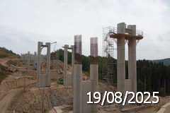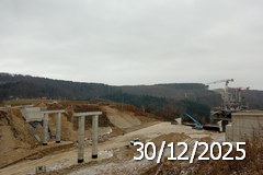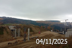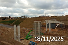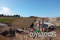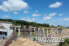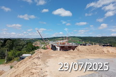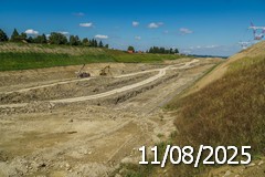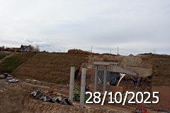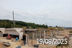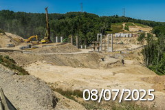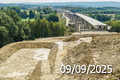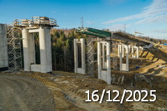 ES-24 wykonywanie pali na podporze P3 i P4 oraz szalowanie korpusu przyczółka na P1, zakończono wykonywanie pali na P2, widok w stronę Rzeszowa